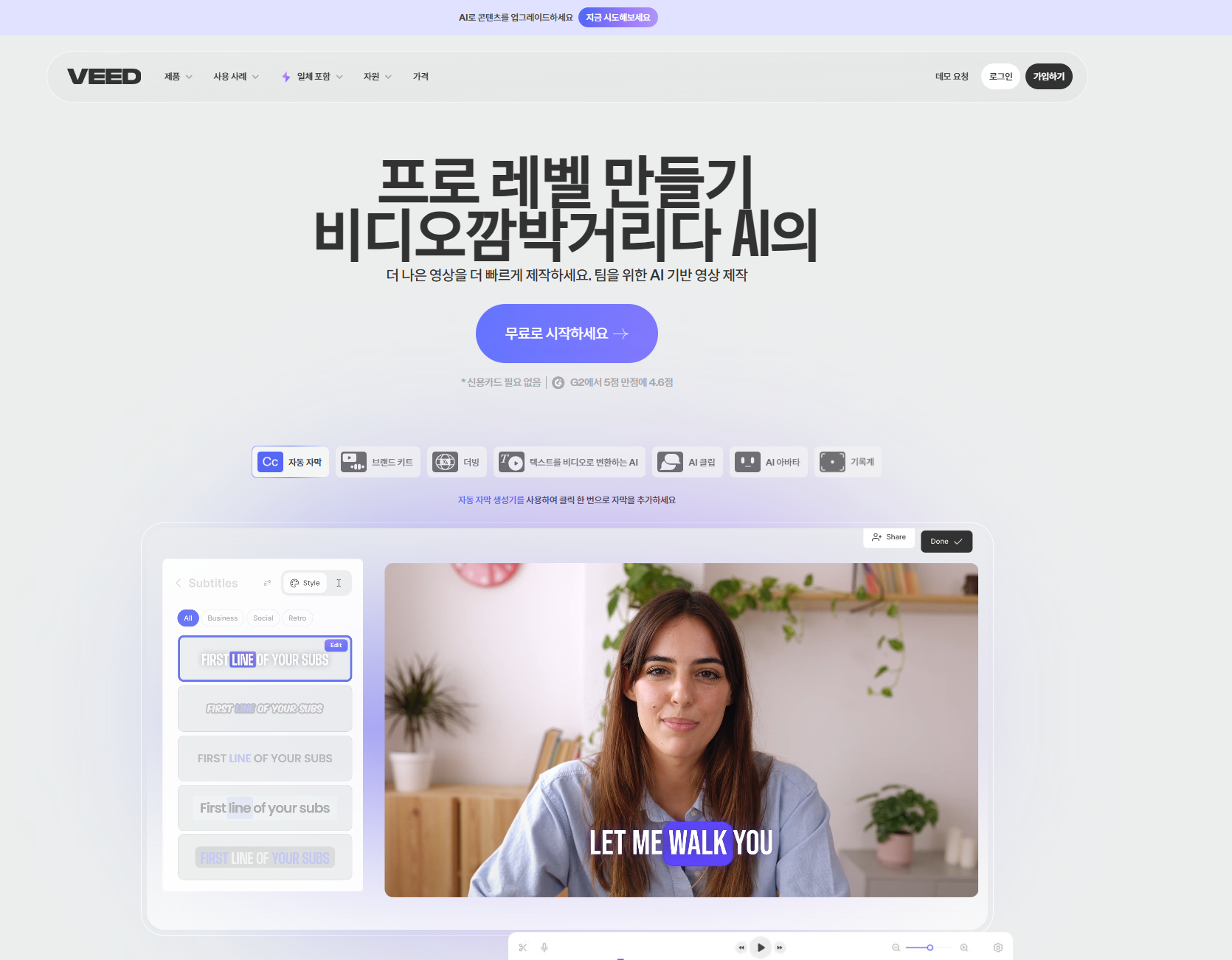 - 빠르고 간단한 사용을 원한다면 VEED.io