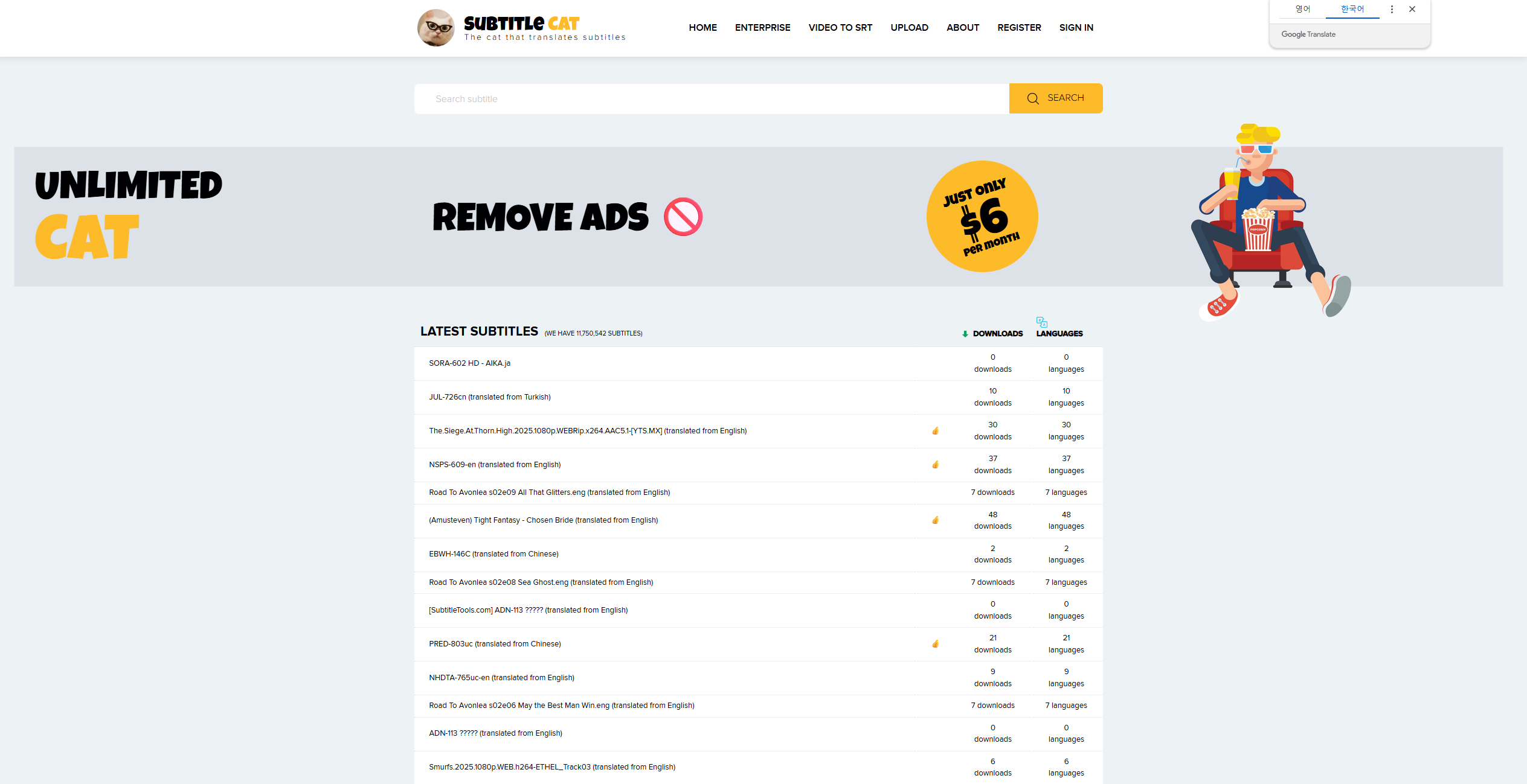- 무료로 자막 파일만 추출하려면 Subtitle Cat